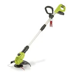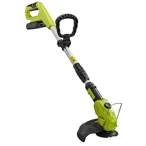 The trimmer features an edge guide, a safely guard and a stabilising handle for comfortable and safe usage. Included are a charger and charging base. Also available is a spare battery pack for continuous use whilst one is charging.
