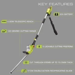 It can cut through hedge stems up to 15.5mm in diameter, and has a 51cm razor sharp double-action reciprocating blade. The head is also angle adjustable through 120-degrees and can be locked in five cutting positions.