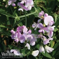 The perennial, everlasting sweet pea is a great climber that will return year after year. Lathyrus latifolius ‘Rosa Perle’ produces a lovely display of soft pink-lilac flowers during summer. Although they don’t have the scent of annual sweet peas, the sprays of flowers on these reliable climbing plants are just as attractive. Ideal in traditional cottage gardens, in borders, on trellises and pergolas and growing through trees and shrubs, this Lathyrus is fast-growing and very easy to grow. Height: 2m (6′). Spread: 1m (3′ 3″).